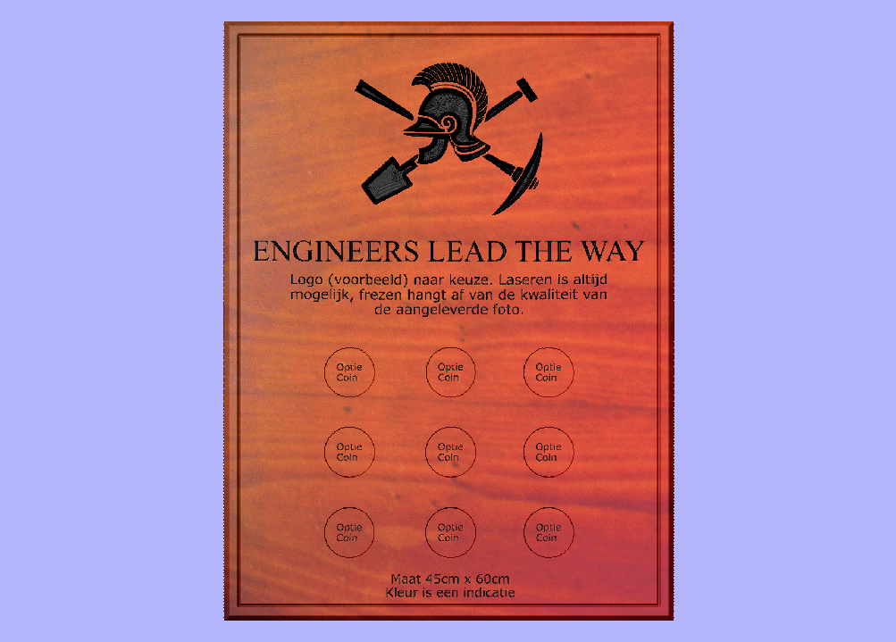 - Ontwerp wordt vooraf met u overlegt. Zelf een voorbeeld maken in Powerpoint of Word is aan te bevelen.